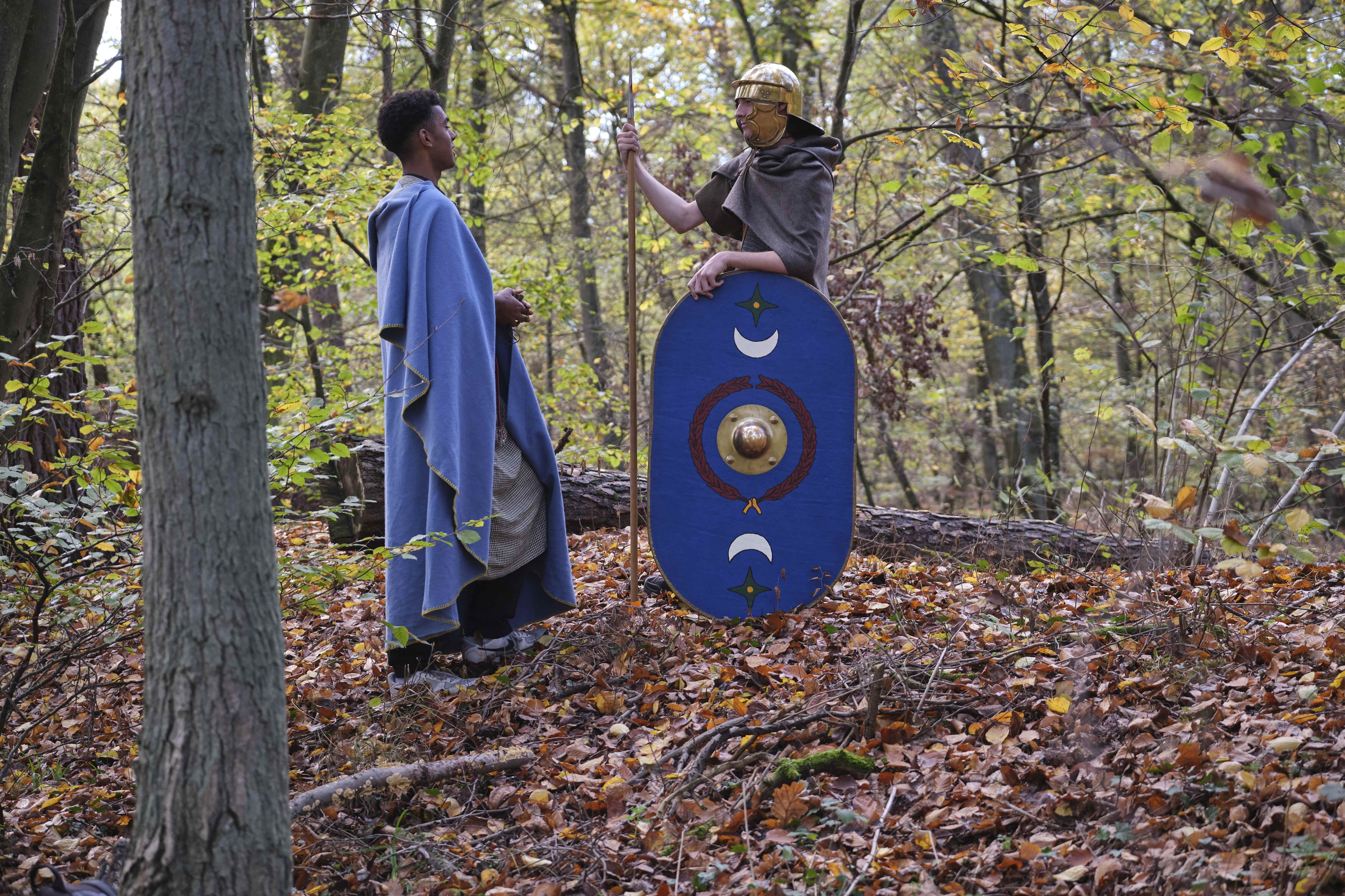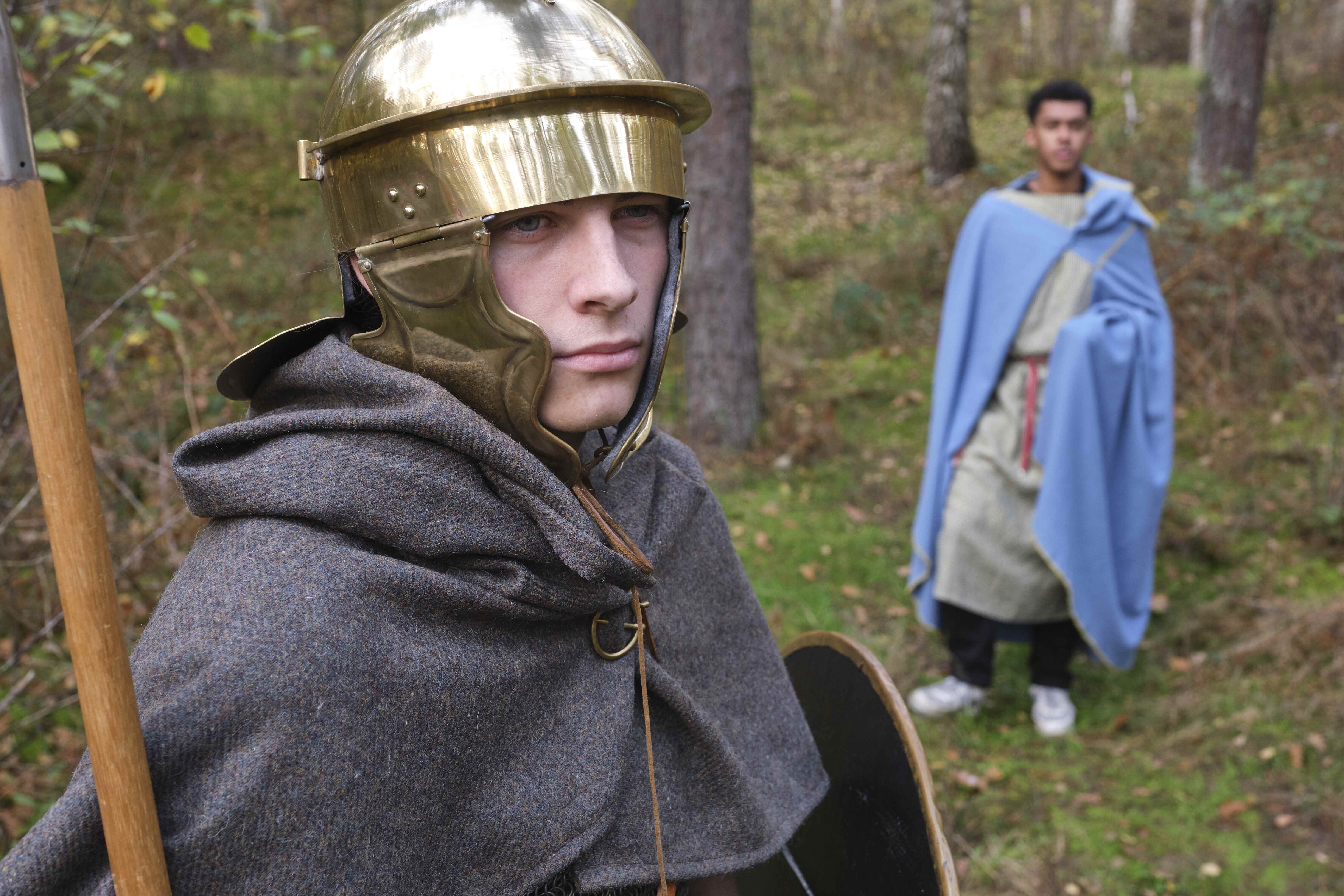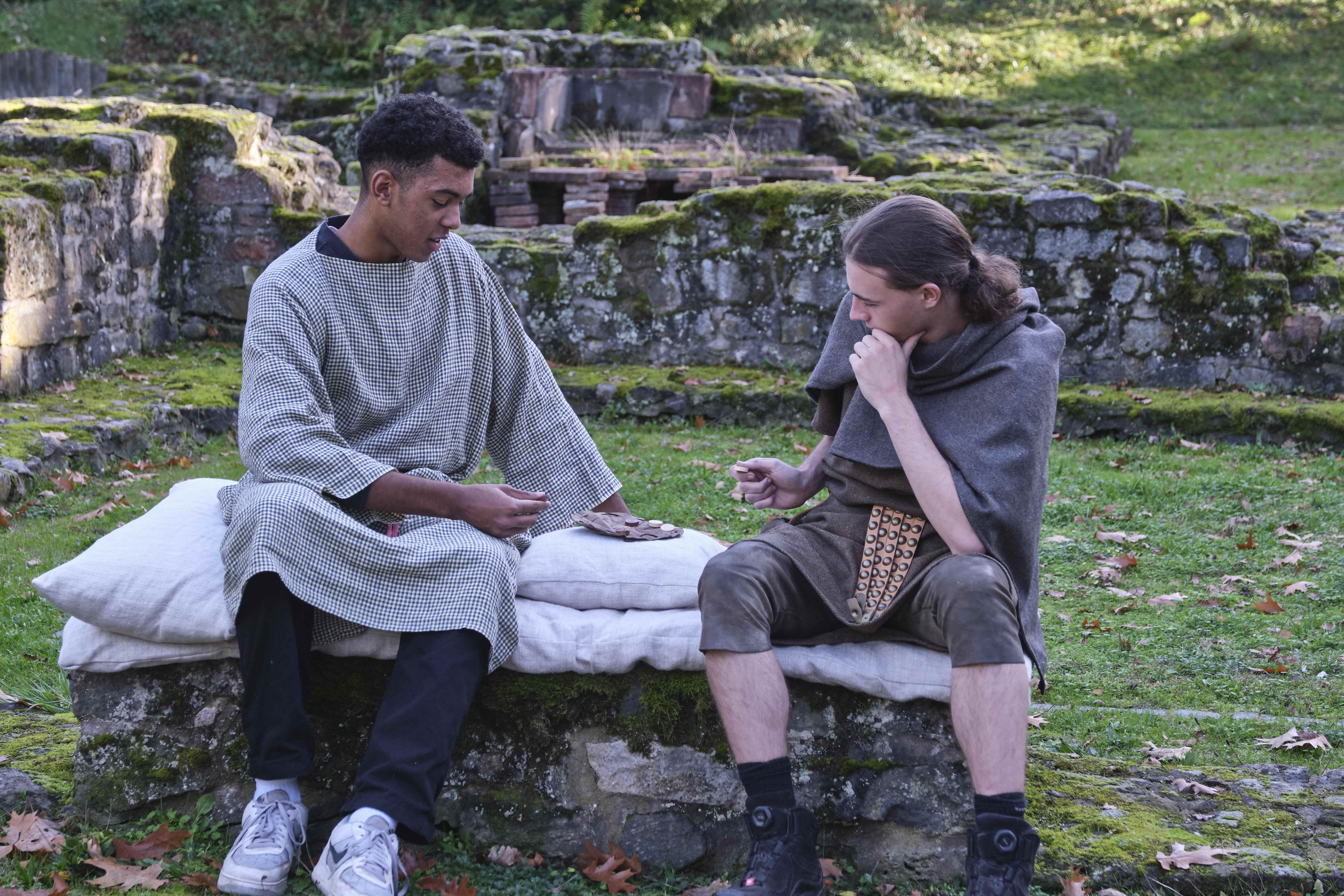 Gewandete im römischen Bad Salisberg / Kesselstadt und am Limes im Wald beim Kleinkastell Neuwirtshaus. © Städtische Museen Hanau, Detlef Sundermann