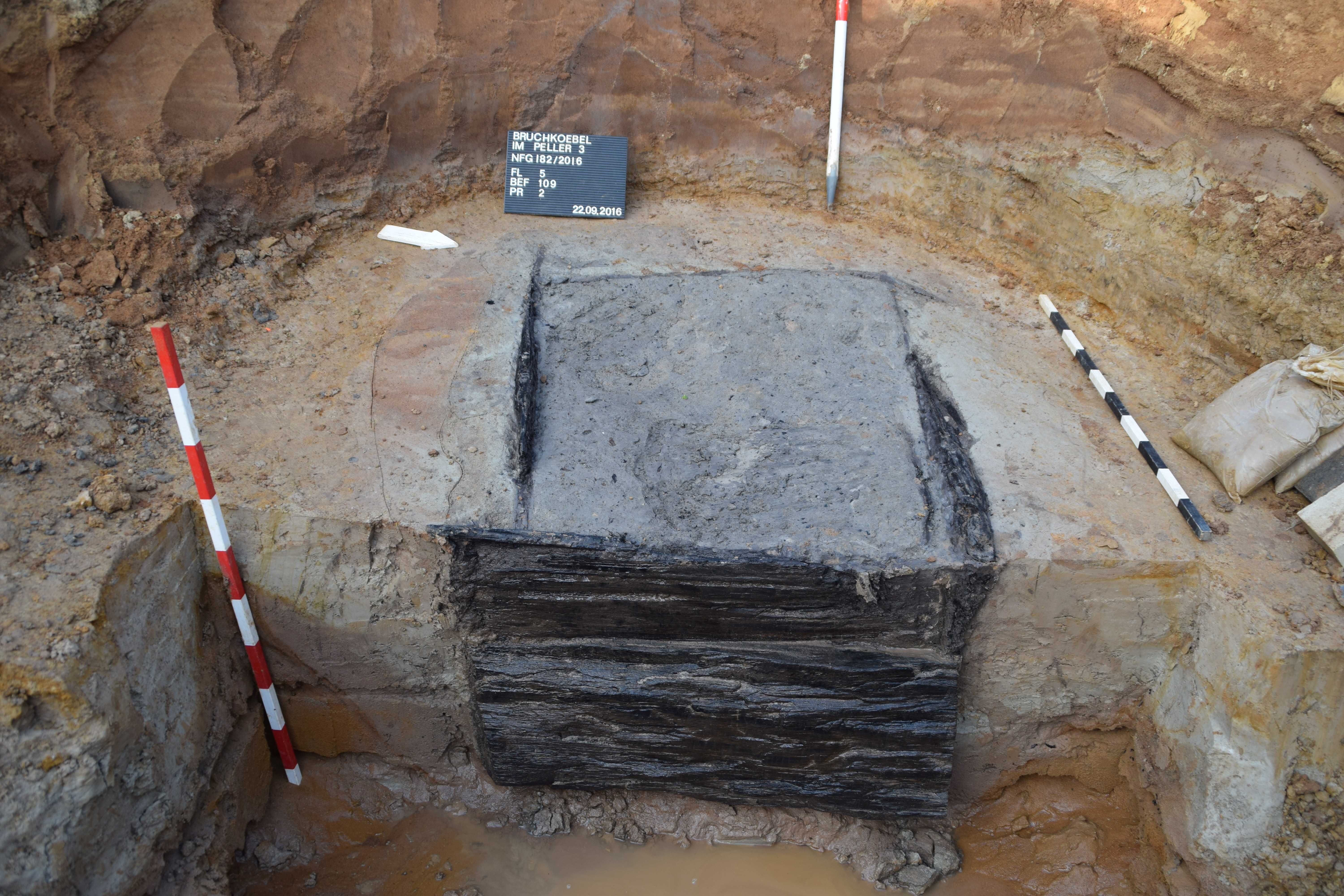 Weiterhin wird erstmalig ein neues Highlight der städtischen Sammlung ausgestellt werden. 2017 passierte ein Glücksfall. In Bruchköbel wurden bei der römischen Grabung „Peller“ unter anderem mehrere römische Kastenbrunnen aus Holz geborgen. Funde von gut erhaltenen organischen Materialen sind in unserer Gegend eine Besonderheit. Die wissenschaftliche Auswertung dauert zwar noch an, aber den Städtischen Museen wurde ein sehr gut erhaltenes Exemplar überlassen. Die mehrjährige und aufwendige Restaurierung war nur durch die großzügige finanzielle Unterstützung der Stiftung der Sparkasse Hanau möglich und fand diesen Herbst ihren Abschluss. Der Brunnen, der aus acht unterschiedlichen großen Hölzern besteht, wird nun erstmalig der Öffentlichkeit präsentiert werden.