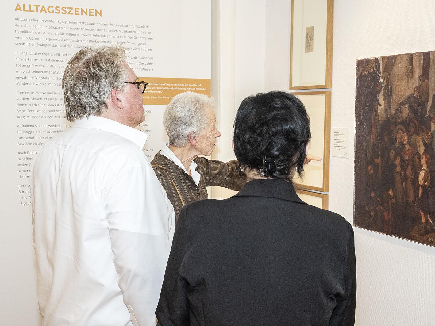 Stadträtin Isabelle Hemsley eröffnete die Ausstellung am 28. August 2025, zum 200. Geburtstag des Malers, mit zahlreichen Gästen. Kurator Dr. Markus Häfner, Leiter der Städtischen Museen Hanau, erläuterte die Ausstellungskonzeption und führte in Biografie und Werk von Cornicelius ein. Eine Spoken Word Performance von Aileen Schneider rundete das Programm ab.