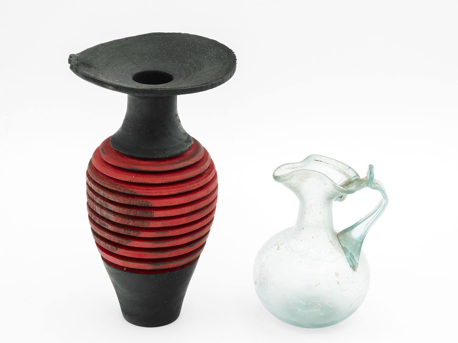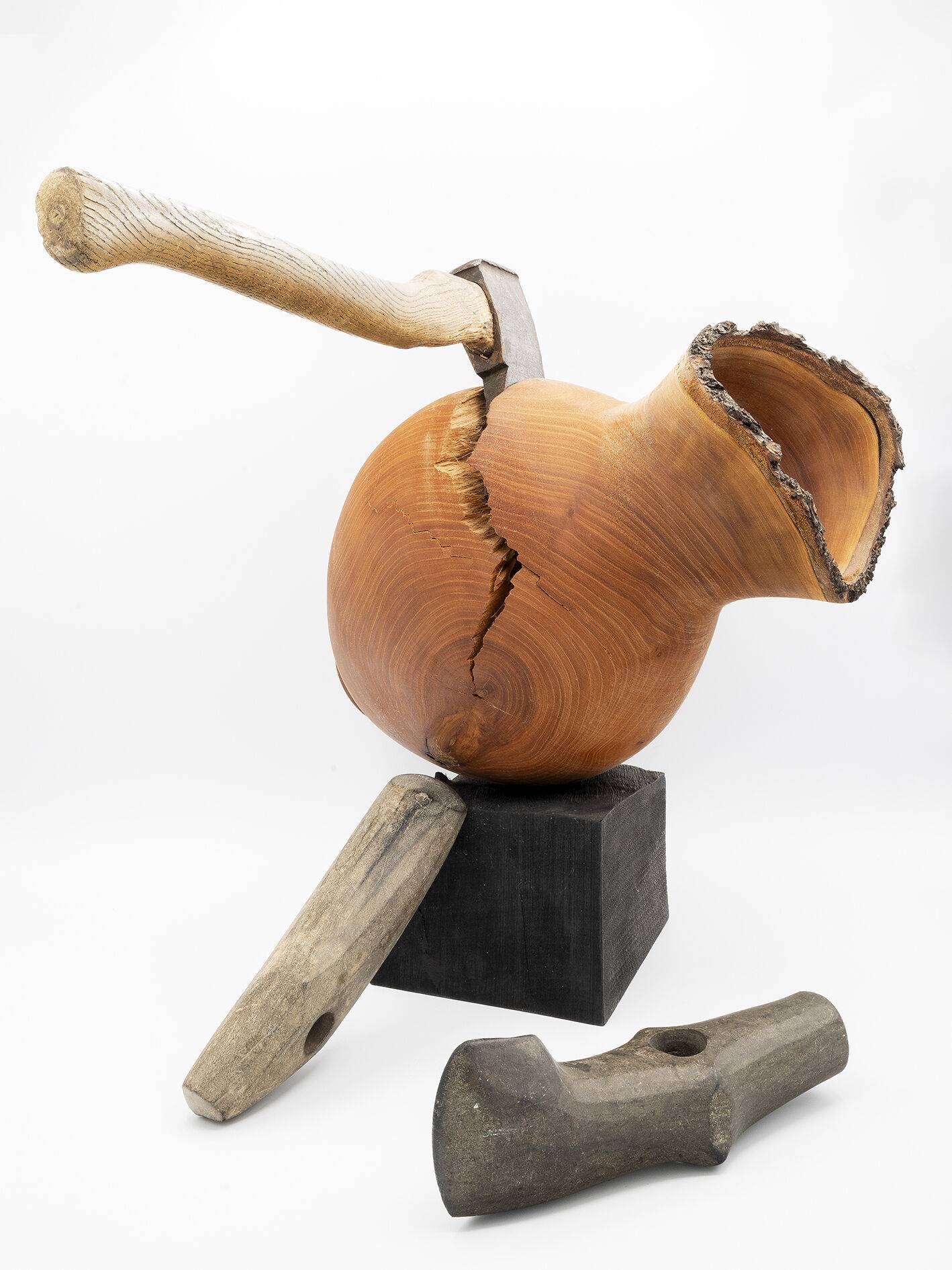 Im Allgemeinen sind archäologische Objekte stumme Zeugen vergangener Zeiten. Becher, Schalen & Co. sind aber auch einzigartige Kunstwerke. Welche Absicht hatte die Künstlerin oder der Künstler? Das ist nicht bekannt. Im Gegensatz kann der Holzbildner Klaus Kirchner zu seiner Kunst konkrete Aussagen geben und für die Welt der Form, Skulptur und Handwerkskunst begeistern. Der Dialog zwischen den Objekten der Vergangenheit und der Gegenwart bietet den Besucherinnen und Besuchern einen offenen Raum für eigene Ideen, Überlegungen und Vorstellungen.