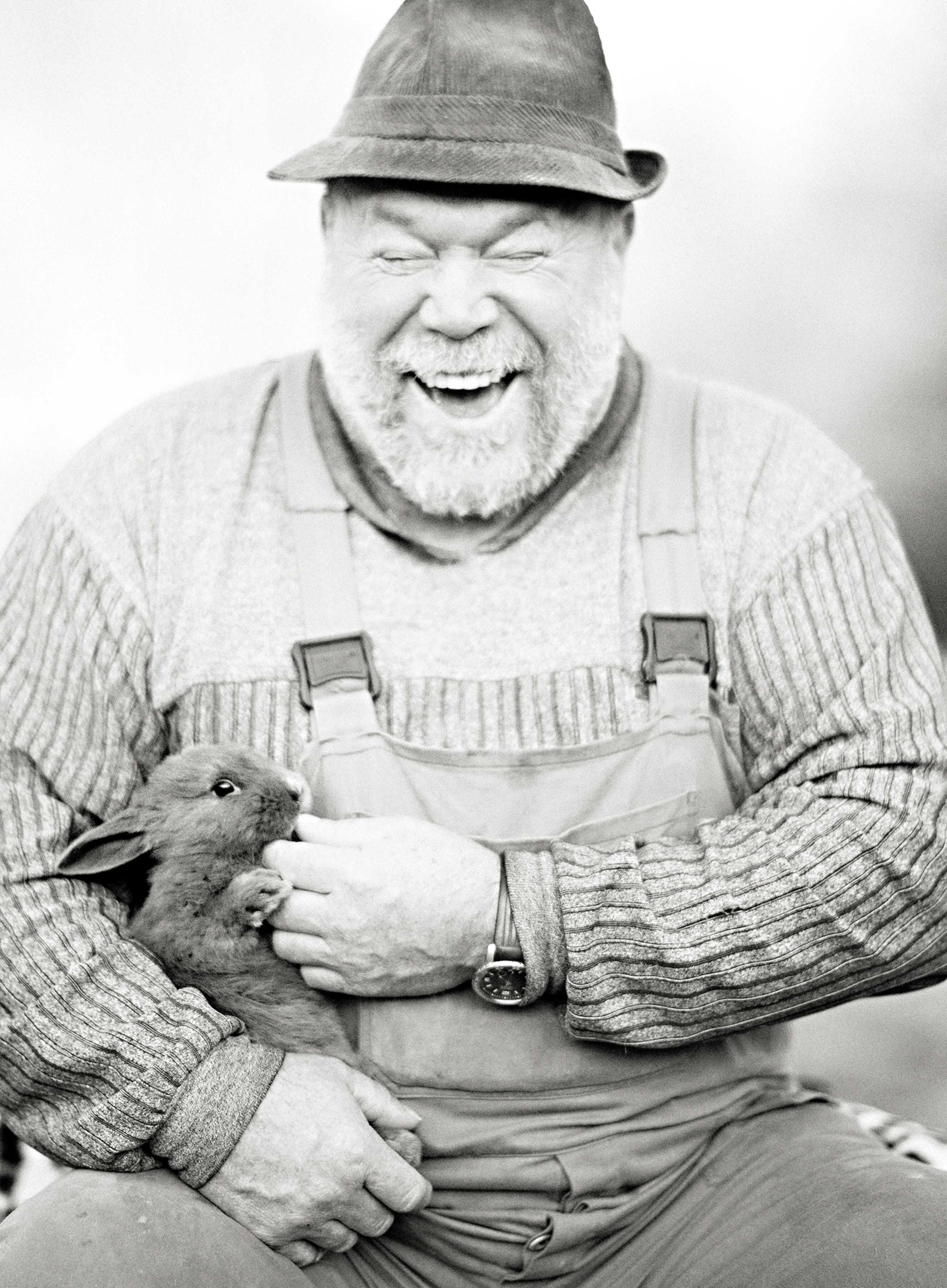Männer und ihre Tiere: Man könnte der Fotografin vorwerfen, dass sie ausschließlich besonders liebreizende Exemplare ausgesucht habe. Das ist richtig und das ist falsch. So wurde der Hase geschlachtet und die Rinder sind in der Bratpfanne gelandet. Alle fotografierten Männer aber haben ihre Tiere zu Lebzeiten mit Liebe und Respekt behandelt; nur solchen Männern konnte Ruth Marcus beim Fotografieren das Gefühl vermitteln, dass sie sich so zeigen können, wie sie sind. Oder wie Eckhard Fuhr es beschrieben hat: